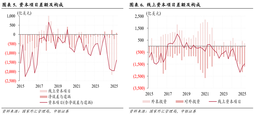 资本项目逆差扩大,内资流出加快、外资流入放缓